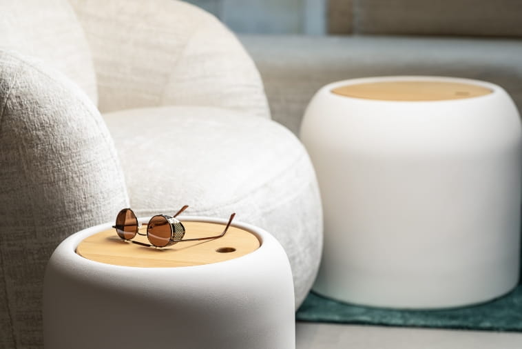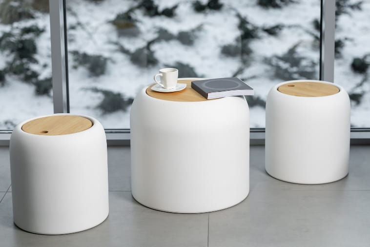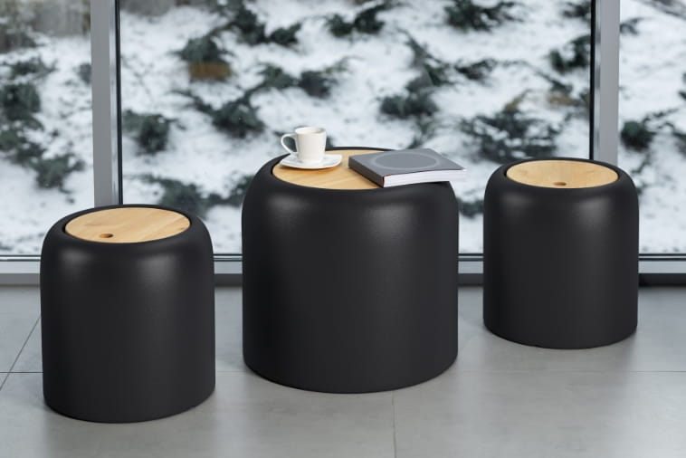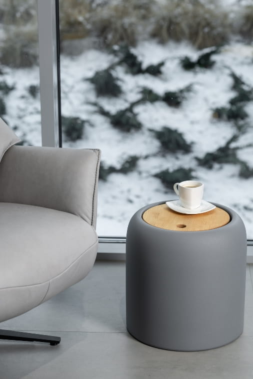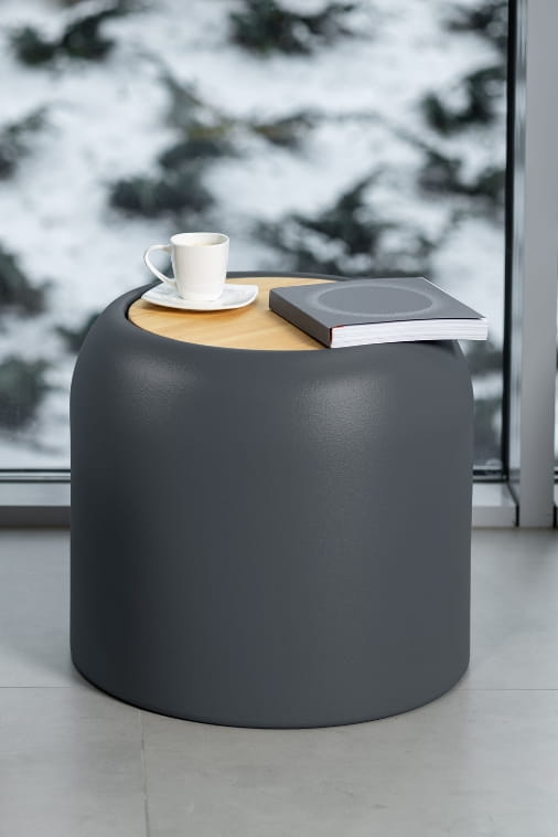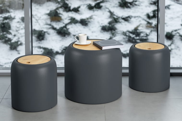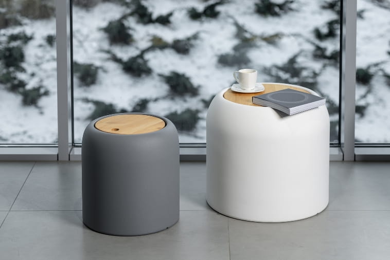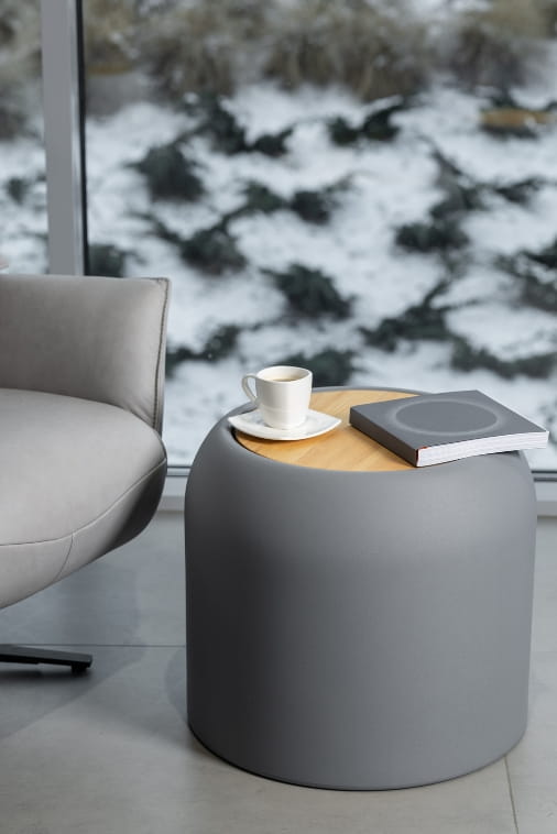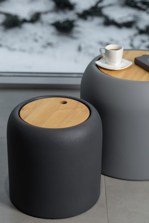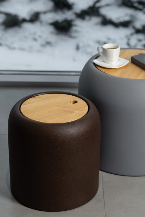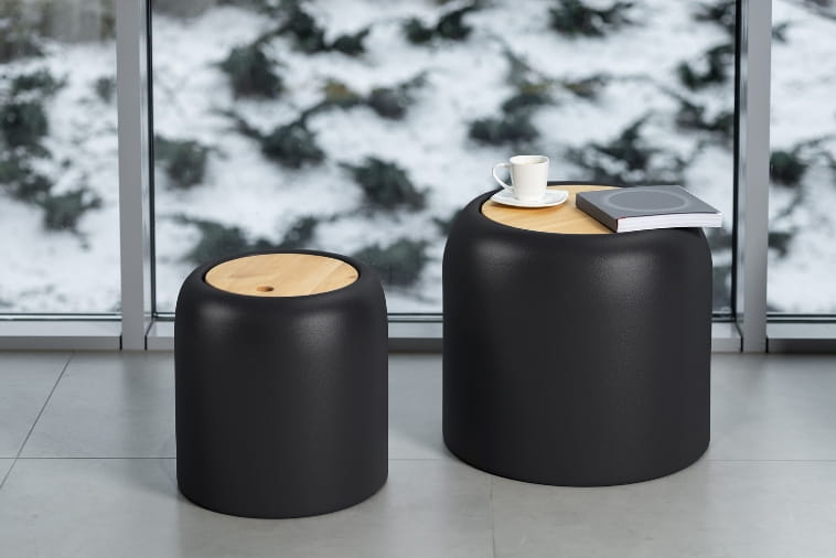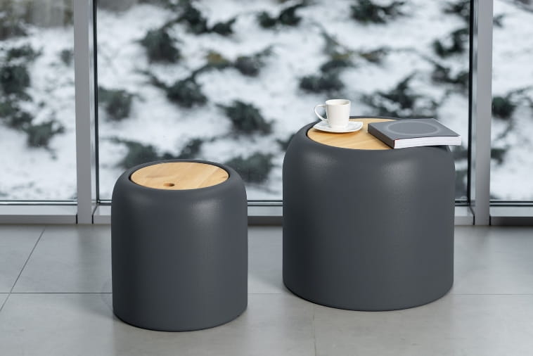 Okrągłe stoliki Monumo Ambienti h39 oraz h46, dzięki swoim rozmiarom, łatwo można je przenieść w dowolne miejsce, a także schować w nich różne rzeczy, które w danej chwili są zbędne.