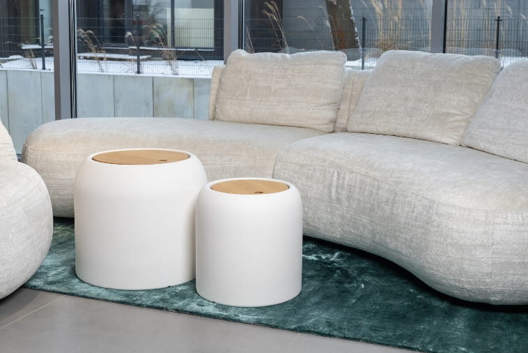 Czy wiesz, że stoliki Ambienti są ręcznie tworzone z dbałością o najmniejsze detale? Połącz stoliki z pufami Ambienti i stwórz kompozycję idealnie pasującą do Twojego wnętrza. Stoliki i pufy Ambienti możesz wykorzystać również jako donica na rośliny.