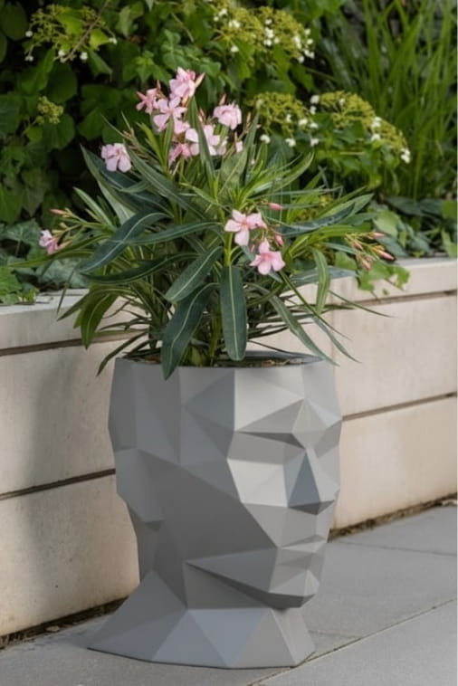 Donica Adonis- to zupełnie nowe podejście do tworzenia designerskich elementów wystroju wnętrz z zachowaniem geometrycznych kształtów, charakterystycznych dla Naszej marki. Adonis, o niespotykanej jak dotąd formie głowy, nada każdemu pomieszczeniu nowoczesnego wyglądu. Dzięki swoim wymiarom jest niezwykle funkcjonalna. Sprawdzi się zarówno jako donica na rośliny doniczkowe, jak i wazon na obfity bukiet kwiatów ciętych. Wyprodukowana została z ekologicznego i trwałego materiału jakim jest polietylen.