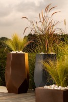 Aranżacja składająca się z dwóch lub trzech doniczek Bari z pewnością zwróci uwagę, a szczególnie wtedy, gdy te donice zostaną wykorzystane do podkreślenia piękna skrzydłokwiatów lub kolorowych traw ozdobnych