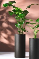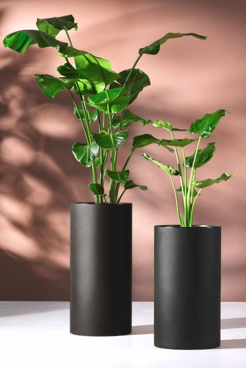 Donica Alto o wysokości 75 cm to wyjątkowy element dekoracyjny, który łączy w sobie prostotę klasycznej formy z nowoczesnym designem. Jej walcowaty kształt oraz głęboka czerń tworzą harmonijną całość, która doskonale wpisuje się zarówno w minimalistyczne, industrialne wnętrza, jak i w bardziej tradycyjne, naturalne aranżacje ogrodowe. Dzięki uniwersalnemu charakterowi i wyważonym proporcjom, donica Alto nie przytłacza przestrzeni, a jednocześnie staje się jej wyrazistym akcentem.