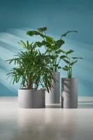 Dzięki neutralnej kolorystyce, donica świetnie komponuje się z zielenią roślin, podkreślając ich naturalne piękno i dodając świeżości całej aranżacji. Możesz wykorzystać ją jako donicę salonową, która nada wnętrzu lekkości i nowoczesnego stylu, lub ustawić ją na zewnątrz – na tarasie, balkonie, werandzie, przy wejściu do domu albo w ogrodzie – gdzie wspaniale uzupełni kompozycje kwiatowe i roślinne.
