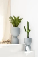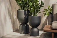 Donica Kielich wyróżnia się charakterystyczną sylwetką o kielichowej formie, która natychmiast przyciąga uwagę i dodaje wnętrzom oraz przestrzeniom outdoorowym szlachetnego charakteru. Jej głęboki odcień zieleni harmonijnie współgra z roślinnością oraz nowoczesnymi aranżacjami. To idealny wybór do salonów, holi, biur, a także na tarasy, ogrody i balkony.