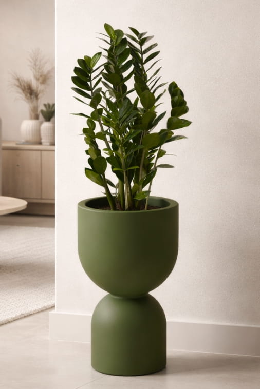 Jej charakterystyczna, kielichowa forma oraz głęboki, elegancki zielony odcień dodają prestiżu każdej aranżacji. Sprawdzi się zarówno we wnętrzach — od salonu po biuro — jak i na zewnątrz, ożywiając tarasy i ogrody. Styl, solidność i ponadczasowa estetyka sprawiają, że to wybór, który zachwyca zarówno wyglądem, jak i wytrzymałością na lata.