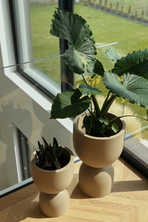 Donica Kielich wyróżnia się subtelnym, ale nowoczesnym designem, który doskonale podkreśla naturalne piękno roślin. Biała powierzchnia dodaje jej lekkości, a jednocześnie jest na tyle neutralna, że pozwala na pełne wyeksponowanie roślinności. Taka prostota formy sprawia, że donica Kielich nie przytłacza przestrzeni, lecz staje się eleganckim akcentem, który uzupełnia całą aranżację.