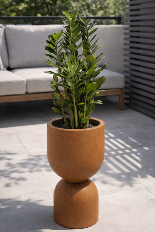 Jej subtelny, kielichowy kształt w połączeniu z głębokim, rdzawej stali odcieniem nadaje przestrzeni nowoczesnej lekkości i elegancji. Doskonale współgra z aranżacjami minimalistycznymi, skandynawskimi i klasycznymi. Lekka, stabilna i łatwa w pielęgnacji — idealna do salonu, ogrodu, na taras czy balkon. To stylowa dekoracja, która podkreśla urok każdej rośliny i nadaje przestrzeni wyjątkowego charakteru.