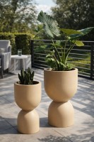 Donica Kielich 50 cm to produkt o eleganckim, zwężającym się ku dołowi kształcie, przypominającym formą klasyczny kielich – symbol piękna i harmonii, znany już w starożytnych ogrodach śródziemnomorskich. Takie rozwiązanie pozwala nie tylko wyeksponować rośliny, ale również optycznie „unieść” zieleń, co sprawia, że kompozycja roślinna zyskuje lekkość i przestrzeń. Beżowa barwa nadaje donicy ciepły, naturalny charakter – pięknie współgra zarówno z zielenią liści, jak i kolorowymi kwiatami, drewnem, betonem architektonicznym czy kamieniem.