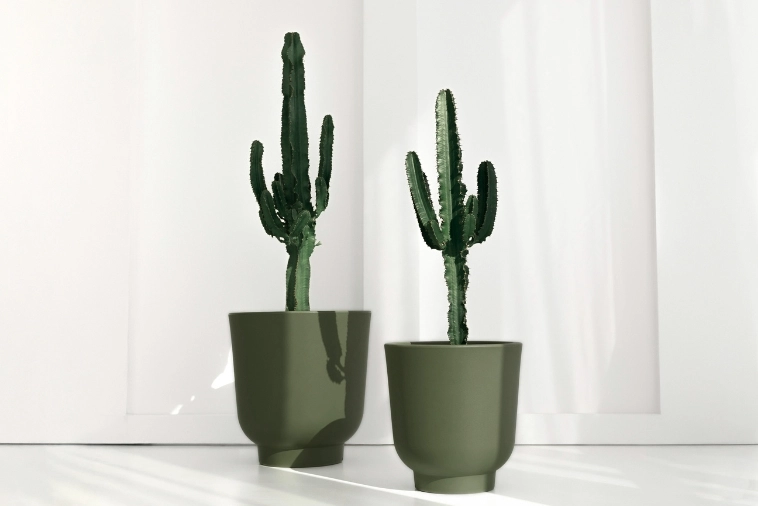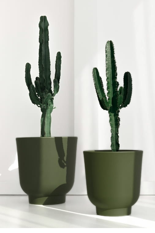 Dzięki harmonijnej, lekko owalnej linii i stonowanej kolorystyce, donica efektownie eksponuje rośliny, jednocześnie wtapiając się w otoczenie. Głęboka zieleń donicy znakomicie koresponduje z naturalną paletą roślin, wzmacniając ich urok bez narzucania się wizualnie. To doskonały akcent dla miłośników nowoczesnych, ale przytulnych aranżacji.
