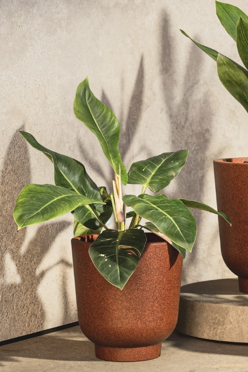 Dzięki harmonijnej, owalnej linii i efektowi stalowej rdzy, donica wnosi do przestrzeni loftowy klimat z nutą elegancji. Jej brązowa barwa idealnie kontrastuje z jasnymi trawami, żywą zielenią oraz pastelowymi kwiatami, tworząc spójną, przyciągającą uwagę kompozycję. To detal, który dodaje aranżacji głębi i nieoczywistego stylu – zarówno we wnętrzach, jak i na zewnątrz.
