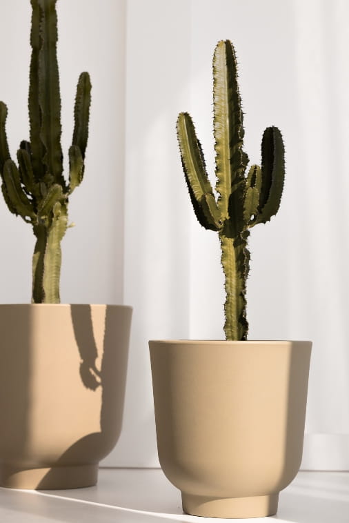 Odcień beżu mokka, inspirowany naturalnymi barwami ziemi i kawy z mlekiem, należy do kolorów ponadczasowych – w aranżacji przestrzeni działa jak neutralna baza, która uspokaja kompozycję i optycznie ociepla otoczenie. Dzięki temu donice w tym kolorze łatwo dopasować do zmieniających się trendów oraz sezonowych dekoracji, bez konieczności wymiany całej aranżacji.