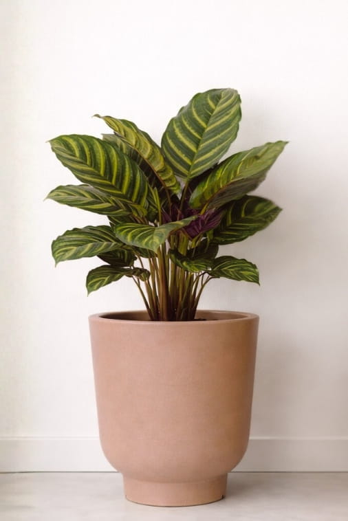 Matowy kolor beż mokka, inspirowany naturalnymi tonami ziemi i piasku, podkreśla piękno zieleni, nie dominując kompozycji. Owalny kształt donicy efektownie eksponuje zarówno bujne liście, jak i intensywne barwy kwiatów, wprowadzając do przestrzeni wizualną równowagę. To propozycja dla osób ceniących współczesny styl, naturalność i ponadczasową estetykę – zarówno w przestrzeniach prywatnych, jak i komercyjnych.