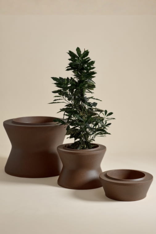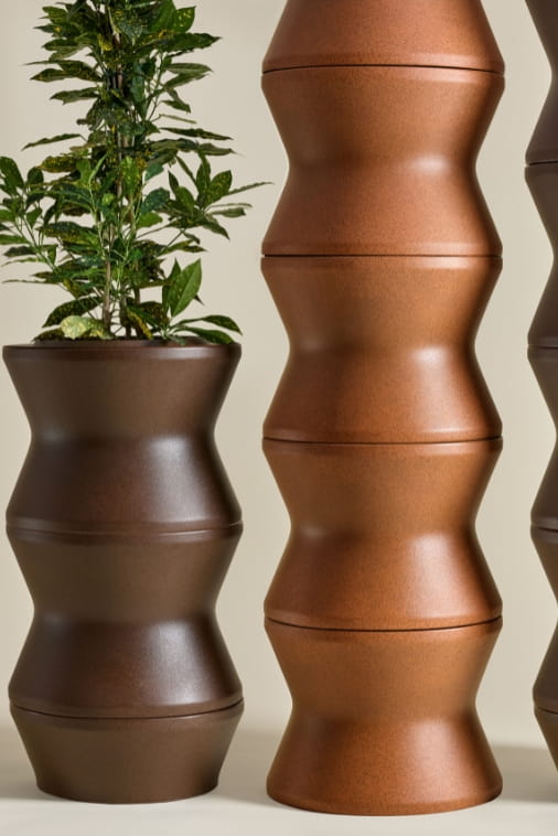 Duża donica Stack L – modułowy system do ekspresyjnej prezentacji zieleni w wykończeniu efekt stalowej rdzy