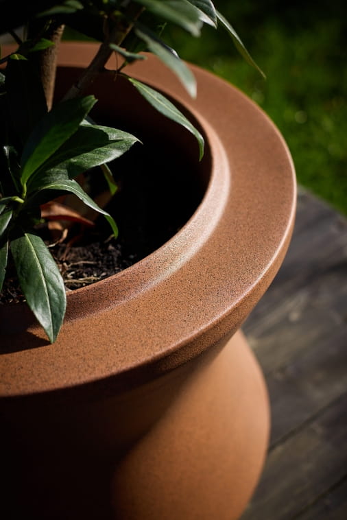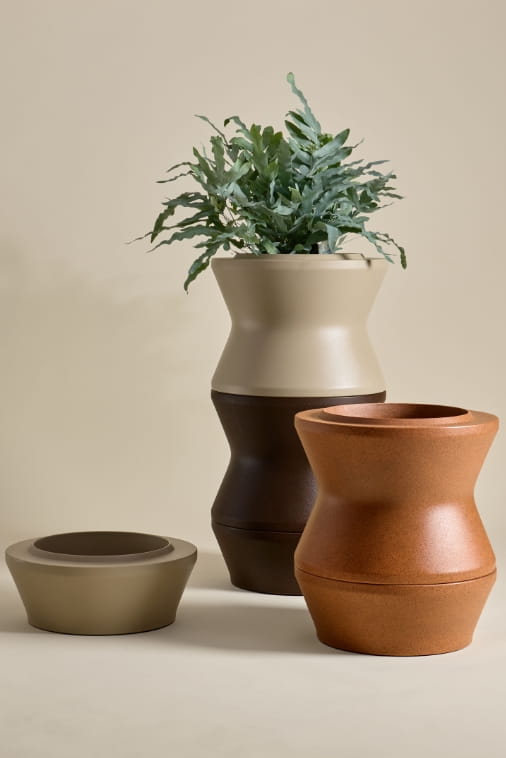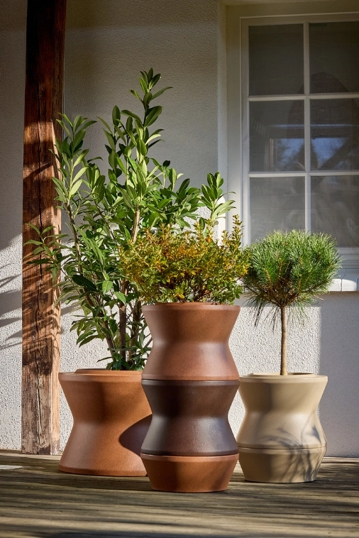 Donice Stack L, Stack M i Stack Bottom M wykonano z lekkiego, trwałego i w pełni recyklingowalnego polietylenu (PE) barwionego w masie. Materiał ten łączy niewielką wagę z wyjątkową odpornością eksploatacyjną i pozwala na długotrwałe użytkowanie w różnorodnych warunkach klimatycznych. Dzięki technologii formowania rotomouldingowego uzyskuje się równomierną grubość ścianek, co gwarantuje wytrzymałość bez konieczności stosowania dodatkowych wzmocnień.