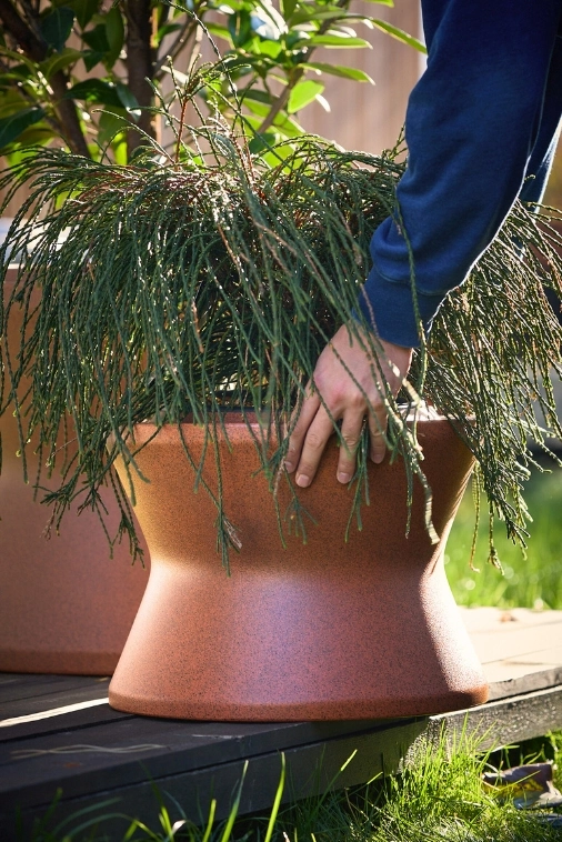 Utrzymanie donicy Stack L w doskonałym stanie jest bardzo proste. Wystarczy regularne czyszczenie przy użyciu łagodnych środków czyszczących i miękkiej ściereczki – nie ma potrzeby stosowania agresywnych detergentów ani środków ściernych. Zimą należy opróżnić donicę z nadmiaru wody, aby uniknąć uszkodzeń spowodowanych zamarzaniem i rozsadzaniem materiału.