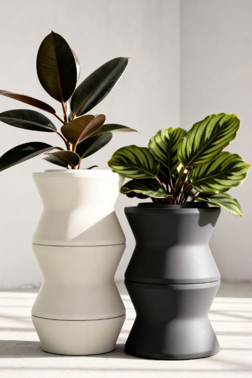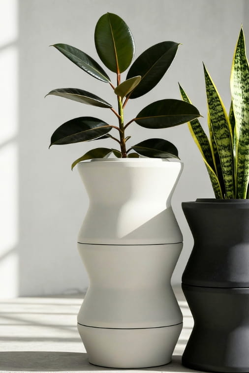 Modułowe donice, jak Stack L, wywodzą się z idei „living architecture” – czyli architektury, w której rośliny stają się integralną częścią budynku lub przestrzeni, a nie tylko dodatkiem. Dzięki modułom można tworzyć „żywe ściany”, zielone kolumny czy wielopoziomowe aranżacje, które zmieniają się w czasie wraz z roślinami. To trochę jak tworzenie miniaturowego, dynamicznego krajobrazu, który reaguje na przestrzeń i użytkownika.