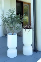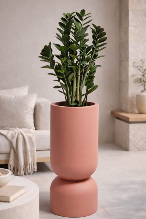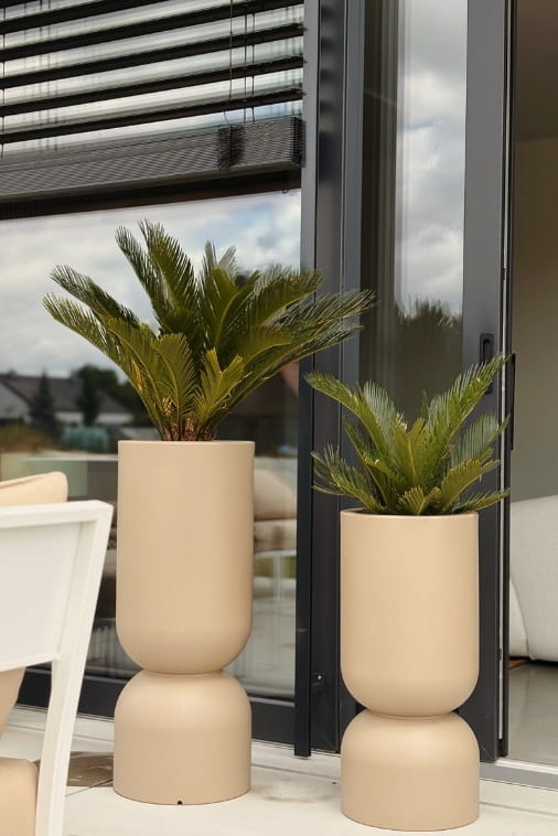Donica tarasowa Perfetto 65 w odcieniu brzoskwiniowym (peach fuzz) to harmonijne połączenie nowoczesnej estetyki, solidnego wykonania i praktycznego zastosowania. Jej charakterystyczna forma, przypominająca elegancki kielich lub smukłą kolumnę, przyciąga wzrok i nadaje przestrzeni wyjątkowego charakteru. Świetnie prezentuje się zarówno w aranżacjach domowych, jak i komercyjnych – sprawdzi się na tarasie, balkonie, w ogrodzie, salonie czy stylowym biurze.