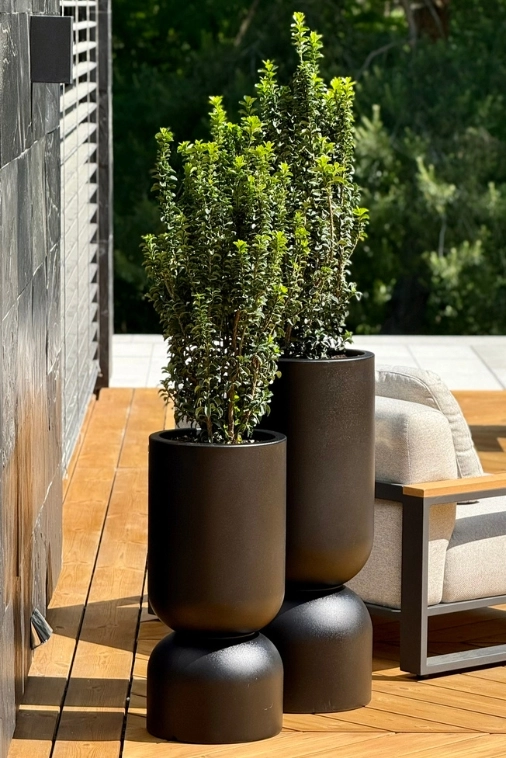 W duecie z większą wersją – Perfetto 80 – tworzy efektowną kompozycję, idealną do ustawienia po obu stronach wejścia, przy sofie, altanie czy na tarasie. Takie zestawienie pozwala na tworzenie spójnych, przemyślanych aranżacji bez kompromisów.
