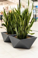 Duże donice Vendetta w stylowy sposób wyeksponują karłowe iglaki lub kolorowe sezonowe kwiaty