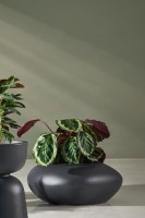 Matowa powierzchnia i organiczna forma donicy sprawiają, że staje się ona integralnym elementem aranżacji – nie przytłacza kompozycji, lecz delikatnie ją dopełnia. Taki wybór kolorystyczny odnajdzie się zarówno w industrialnych przestrzeniach, jak i przytulnych, ekologicznych wnętrzach.