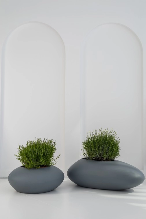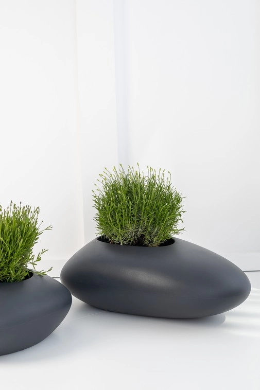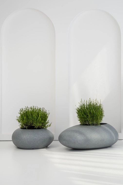 Donica Stoner S to nie tylko efektowna oprawa dla roślin, lecz także wyrazisty element stylu, który nadaje przestrzeni indywidualny charakter. Jej nowoczesny design, inspirowany nieregularną strukturą kamienia, harmonijnie wpisuje się w aktualne trendy wnętrzarskie, łącząc surowość formy z subtelną elegancją.
