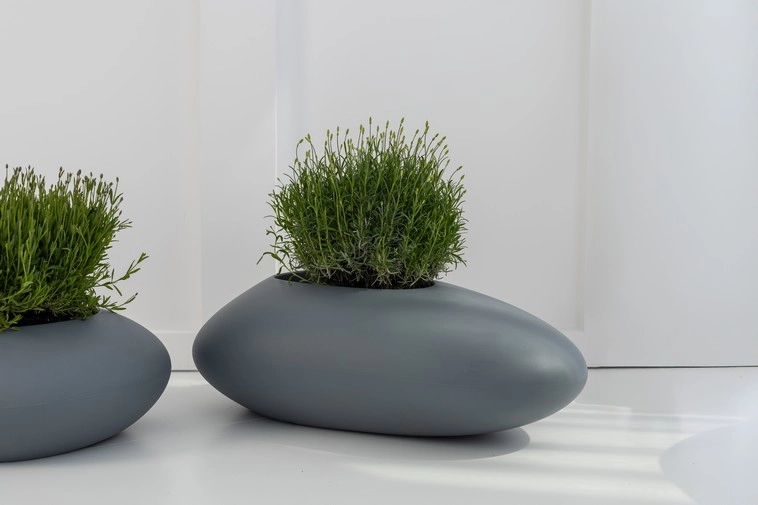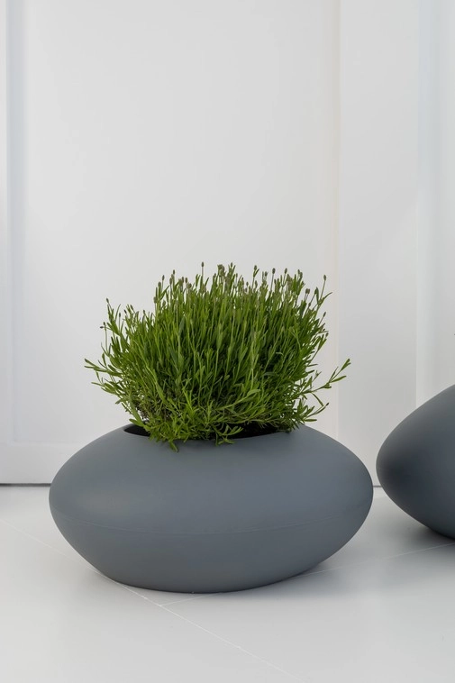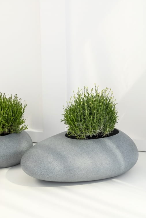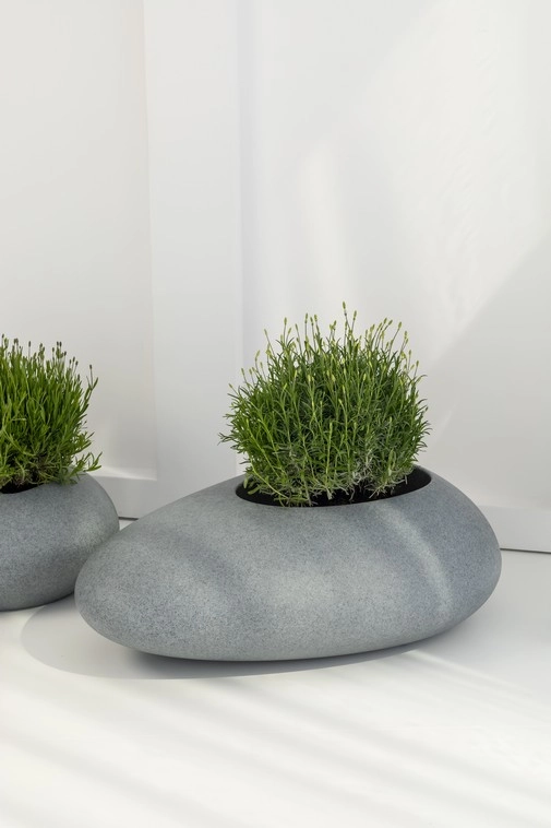 W dobie rosnącej popularności rozwiązań czerpiących z natury, Stoner M stanowi doskonałe odzwierciedlenie tego trendu. Jej obła forma, inspirowana naturalnymi kamieniami rzecznymi, wprowadza do przestrzeni poczucie spokoju i harmonii. Stylowa donica pięknie eksponuje rośliny o różnorodnej fakturze – od bujnych liści po delikatne trawy ozdobne czy geometryczne sukulenty. Świetnie nadaje się również do bardziej minimalistycznych kompozycji z kaktusami czy ziołami.