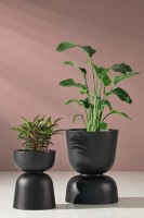 dwustronna konstrukcja umożliwiająca dwa różne sposoby ekspozycji roślin w jednej czarnej donicy