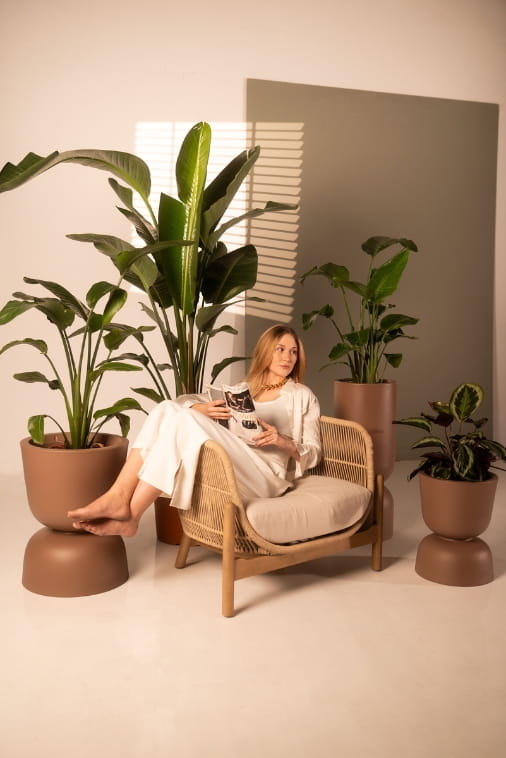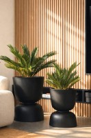 Dzięki możliwości swobodnego obracania donicy w dowolnym momencie, charakter aranżacji można modyfikować szybko, intuicyjnie i bez wysiłku — bez konieczności wymiany produktu, ingerencji w otoczenie ani stosowania dodatkowych elementów czy akcesoriów aranżacyjnych.
