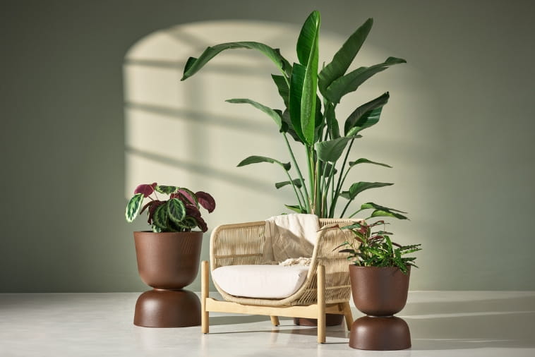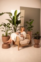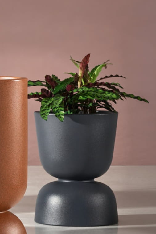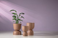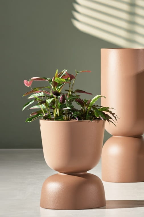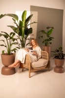 Wykończenie w kolorze corten effect, inspirowane wyglądem stali kortenowej, nadaje donicy głębi i surowej elegancji. Ciepłe, rdzawo-brązowe tony oraz delikatnie matowa faktura przywołują skojarzenia z materiałem, który naturalnie dojrzewa i zyskuje charakter wraz z upływem czasu. Dzięki temu Reverso 45 staje się wyrazistym akcentem wizualnym, który porządkuje aranżację i podkreśla jej nowoczesny, architektoniczny charakter — bez dominowania nad zielenią.