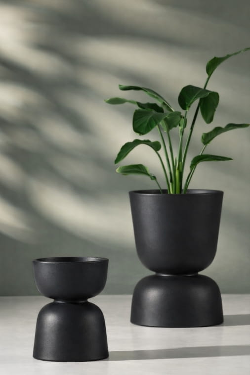 Najmocniejszym wyróżnikiem donicy Reverso 45 jest jej dwustronna, świadomie zaprojektowana forma, która przełamuje tradycyjne podejście do aranżacji zieleni. Zamiast jednego, stałego układu, donica oferuje dwie w pełni funkcjonalne strony użytkowe — każda z nich stanowi niezależną misę do nasadzeń, otwierając przestrzeń na swobodne operowanie wysokością, proporcjami i rytmem kompozycji.
