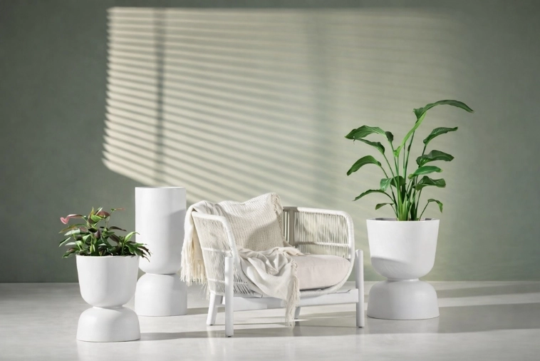 Taka forma pozwala szybko i intuicyjnie modyfikować aranżację bez konieczności wymiany donicy lub ingerowania w otoczenie. Reverso 45 sprzyja projektowaniu kompozycji, które nie są statyczne, lecz mogą ewoluować w czasie, zachowując spójność wizualną, czytelność formy i estetyczną równowagę.