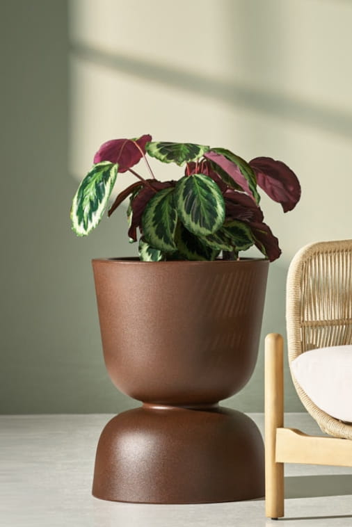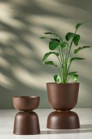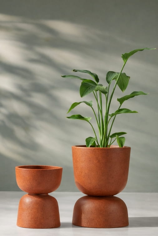 Wykończenie w kolorze efekt stalowej rdzy, inspirowane naturalnym procesem utleniania metalu, nadaje bryle surowości i głębi. Intensywne, rdzawo-brązowe tony oraz matowa, szlachetna faktura budują wrażenie trwałości i autentyczności materiału. Reverso 45 nie jest tłem dla roślin — jest ich świadomą oprawą. Wzmacnia architektoniczny charakter aranżacji i nadaje jej wyrazisty rytm.