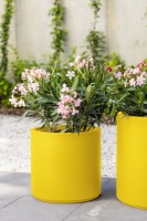 Donica okrągła na taras Cavo 40 cm z wkładem żółta | Monumo