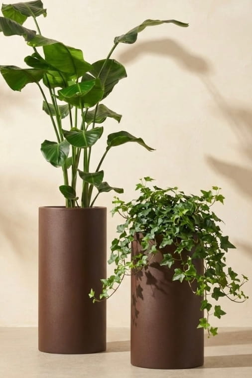 Dzięki wysokości 65 cm i średnicy 31 cm donica Alto w kolorze Corten Effect – imitacja stali doskonale nadaje się do wyeksponowania większych roślin ozdobnych, takich jak fikusy, palmy czy drzewka oliwne. Jej forma umożliwia także tworzenie zielonych ścianek oddzielających przestrzeń, a podwyższona konstrukcja pięknie prezentuje rośliny zwisające oraz trawy dekoracyjne.