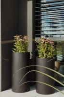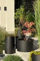 Kolor imitujący korten doskonale współgra z zielenią liści, drewnem, betonem i szkłem. Dzięki temu Alto odnajduje się zarówno w nowoczesnych wnętrzach, jak i w przestrzeniach zewnętrznych — na tarasach, balkonach czy w ogrodach inspirowanych stylem loftowym i minimalistycznym. Może stanowić pojedynczy akcent lub element większej kompozycji z innymi donicami z kolekcji.