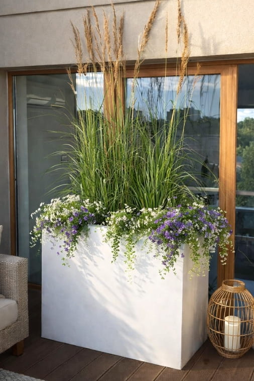 W prostokątnych, podłużnych donicach Longerino można z powodzeniem posadzić kilka roślin obok siebie i stworzyć perfekcyjną aranżację.