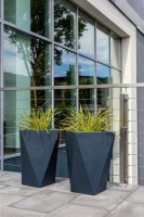Nasze donice stanowią dowód na to, że polski produkt może wyróżniać się zarówno wyglądem, jak również funkcjonalnością. Świetnie sprawdzają się one w wielu miejscach nie tylko pod kątem aranżacji tarasu czy ogrodu a także wnętrz. Dobrze pasują do nowoczesnych, minimalistycznie urządzonych biur i domów w stylu skandynawskim. Warto wspomnieć, że ich wyjątkowy design to nie tylko uczta dla oczu - geometryczne bryły dają możliwość ustawiania obok siebie i tworzenia atrakcyjnych kompozycji. Donica Vaso ma w sobie wszystkie najlepsze cechy betonowych odpowiedników oraz niebywałą lekkość. Polietylen wykorzystany do jej produkcji, oprócz lekkości i walorów wizualnych, jest w pełni zdatny do recyklingu, czyni Donice Vaso odporną siarczyste mrozy zimą oraz letnie upały, a dzięki odporności na promieniowanie UV możemy ją postawić nawet w mocno nasłonecznionym miejscu. Warto również wspomnieć o możliwości wyboru wersji: z wewnętrzną półką lub pełna pojemność w zależności od rośliny, którą chcemy umieścić. Opcjonalnie każda z wersji może być wyposażona w odprowadzenie wody, stosowane w donicach stojących na zewnątrz.