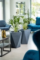 Nasze donice stanowią dowód na to, że polski produkt może wyróżniać się zarówno wyglądem, jak również funkcjonalnością. Świetnie sprawdzają się one w wielu miejscach nie tylko pod kątem aranżacji tarasu czy ogrodu a także wnętrz. Dobrze pasują do nowoczesnych, minimalistycznie urządzonych biur i domów w stylu skandynawskim. Warto wspomnieć, że ich wyjątkowy design to nie tylko uczta dla oczu - geometryczne bryły dają możliwość ustawiania obok siebie i tworzenia atrakcyjnych kompozycji. Donica Vaso ma w sobie wszystkie najlepsze cechy betonowych odpowiedników oraz niebywałą lekkość. Polietylen wykorzystany do jej produkcji, oprócz lekkości i walorów wizualnych, jest w pełni zdatny do recyklingu, czyni Donice Vaso odporną siarczyste mrozy zimą oraz letnie upały, a dzięki odporności na promieniowanie UV możemy ją postawić nawet w mocno nasłonecznionym miejscu. Warto również wspomnieć o możliwości wyboru wersji: z wewnętrzną półką lub pełna pojemność w zależności od rośliny, którą chcemy umieścić. Opcjonalnie każda z wersji może być wyposażona w odprowadzenie wody, stosowane w donicach stojących na zewnątrz.