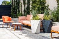 Nasze donice stanowią dowód na to, że polski produkt może wyróżniać się zarówno wyglądem, jak również funkcjonalnością. Świetnie sprawdzają się one w wielu miejscach nie tylko pod kątem aranżacji tarasu czy ogrodu a także wnętrz. Dobrze pasują do nowoczesnych, minimalistycznie urządzonych biur i domów w stylu skandynawskim. Warto wspomnieć, że ich wyjątkowy design to nie tylko uczta dla oczu - geometryczne bryły dają możliwość ustawiania obok siebie i tworzenia atrakcyjnych kompozycji. Donica Vaso ma w sobie wszystkie najlepsze cechy betonowych odpowiedników oraz niebywałą lekkość. Polietylen wykorzystany do jej produkcji, oprócz lekkości i walorów wizualnych, jest w pełni zdatny do recyklingu, czyni Donice Vaso odporną siarczyste mrozy zimą oraz letnie upały, a dzięki odporności na promieniowanie UV możemy ją postawić nawet w mocno nasłonecznionym miejscu. Warto również wspomnieć o możliwości wyboru wersji: z wewnętrzną półką lub pełna pojemność w zależności od rośliny, którą chcemy umieścić. Opcjonalnie każda z wersji może być wyposażona w odprowadzenie wody, stosowane w donicach stojących na zewnątrz.