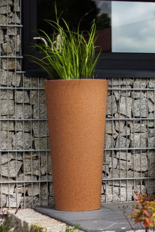 Choć na pierwszy rzut oka wysoka donica tarasowa Habana może przypominać stalową, ciężką konstrukcję, jest to w rzeczywistości bardzo lekkie i trwałe rozwiązanie, stworzone z polietylenu, materiału odpornego na szereg czynników zewnętrznych. Dzięki zastosowaniu najnowszych technologii produkcji, efekt stalowej rdzy jest trwały i nie blaknie pod wpływem działania promieni UV, deszczu, ani mrozu. Rdzawa barwa pozostaje niezmieniona przez długi czas, co czyni donicę nie tylko ozdobą, ale i inwestycją na lata.