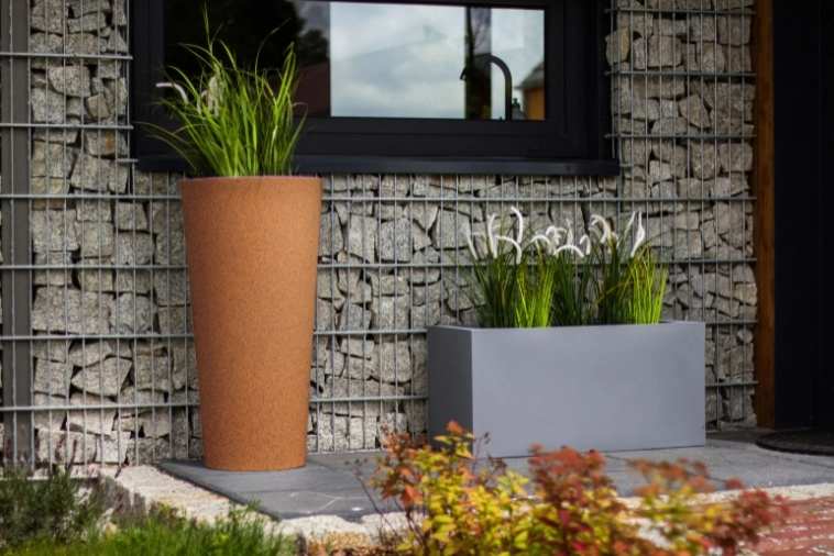 W przestrzeni zewnętrznej donica Habana nadaje się zarówno do nowoczesnych ogrodów, jak i na tarasy czy balkony. Rdzawy odcień świetnie komponuje się z roślinnością, podkreślając naturalny charakter przestrzeni. Jest to także doskonały wybór do ogrodów w stylu industrialnym, gdzie surowość materiałów, takich jak metal, cegła czy beton, łączy się z naturą w harmonijną całość. Donica Habana może być użyta do stworzenia eleganckich kompozycji roślinnych, które przyciągną uwagę gości i wzbogacą przestrzeń na zewnątrz.