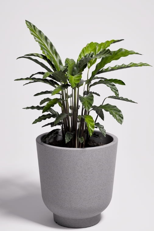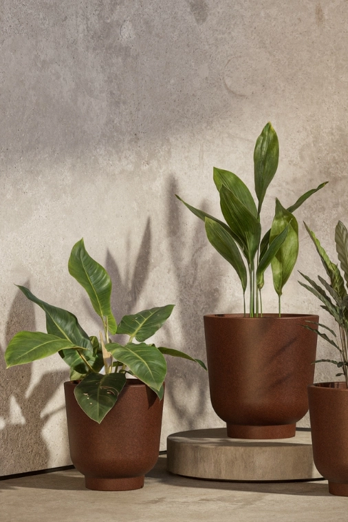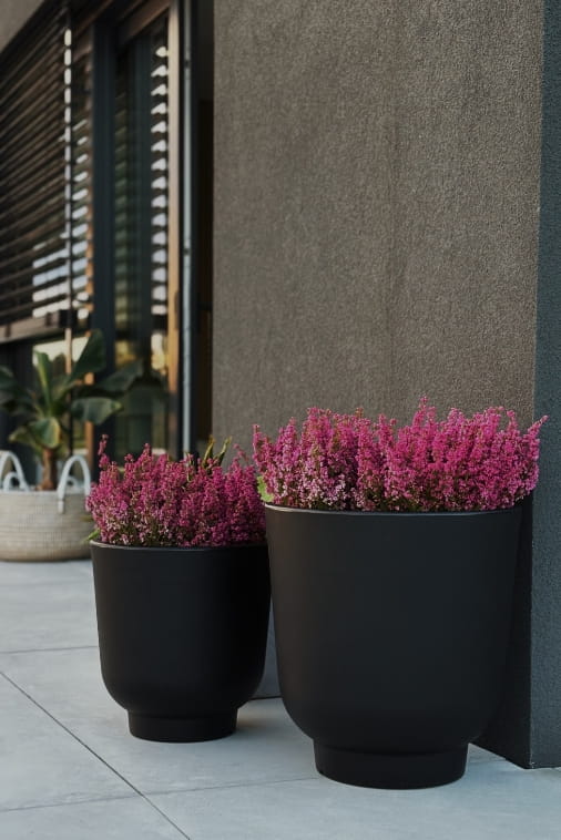 Opływowa forma donicy łagodzi linie aranżacji, dodając przestrzeni lekkości i nowoczesnego charakteru. Efekt kamienia w odcieniach szarości nie przytłacza – przeciwnie, wprowadza balans i harmonię, niezależnie od miejsca, w którym się znajduje. Stevio świetnie odnajduje się w designerskich wnętrzach, na tarasach, balkonach czy patio – jako dyskretny, ale charakterystyczny detal.
