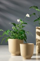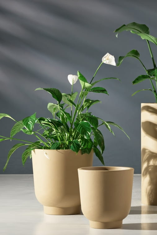 Jednolita, matowa powierzchnia o delikatnie chropowatej fakturze przywodzi na myśl naturalne materiały, dzięki czemu roślinność prezentuje się jeszcze bardziej efektownie. Organiczny, łagodnie zaokrąglony owalny kształt przełamuje geometryczną surowość wnętrz, nadając przestrzeni miękkości i wizualnej równowagi. Beż mokka harmonijnie współgra z szeroką paletą zieleni oraz barw kwiatów – nie dominuje, lecz podkreśla ich naturalne piękno.