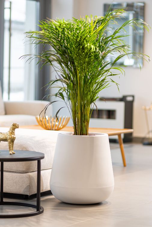 Te ekskluzywne donice do salonu i ogrodu mogą eksponować różne rośliny. Zamiokulkas, Palma, Filodendron, Kalatea- to rośliny, które w harmonijny sposób współgrają z donicą Lago.