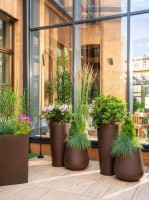 Te ekskluzywne donice do salonu i ogrodu mogą eksponować różne rośliny. Zamiokulkas, Palma, Filodendron, Kalatea- to rośliny, które w harmonijny sposób współgrają z donicą Lago.