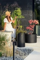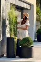 Donica Cavo dostępna jest w wersji o pełnej pojemności wewnętrznej, co oznacza, że cała jej objętość jest do dyspozycji korzeni roślin. To idealne rozwiązanie dla większych drzewek ozdobnych i roślin o rozbudowanym systemie korzeniowym – zapewnia im stabilne warunki wzrostu i dłuższą żywotność.