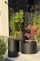 Donica Cavo o wymiarach 60x40 cm w wykończeniu corten effect to nowoczesna forma inspirowana postindustrialnym stylem i rdzawą stalą, która z powodzeniem odnajduje się w nowoczesnych ogrodach, tarasach oraz wnętrzach użytkowych. Jej minimalistyczna, cylindryczna sylwetka i matowe wykończenie imitujące korozję metalu tworzą wyrazisty kontrapunkt dla zieleni, wprowadzając jednocześnie ciepły, ziemisty ton do aranżacji.