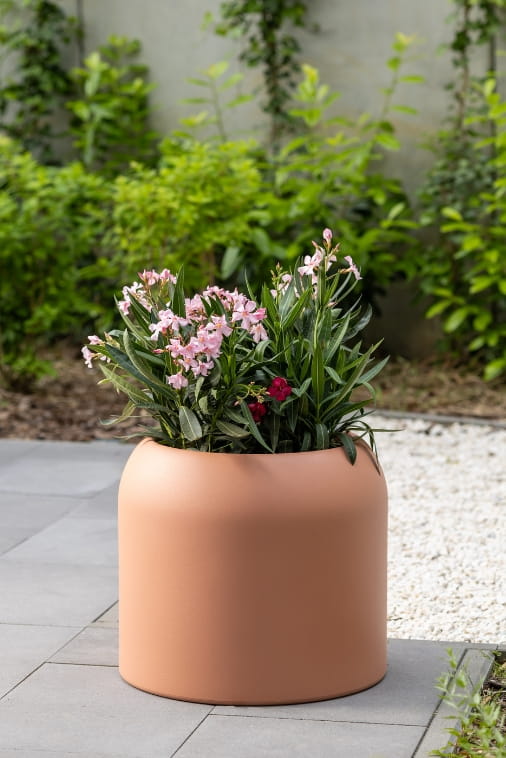 Duża donica okrągła na taras Ambienti 46 cm z wkładem brzoskwiniowa | Monumo