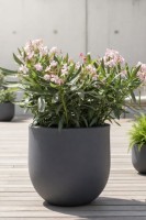 Duża donica okrągła na taras Primo 50 cm antracytowa z wkładem | Monumo