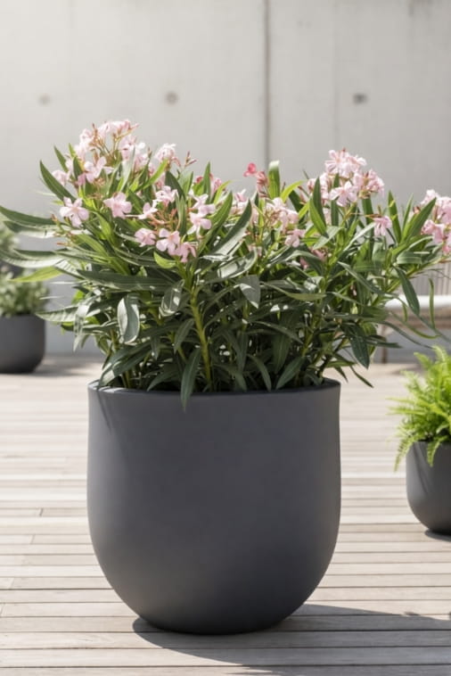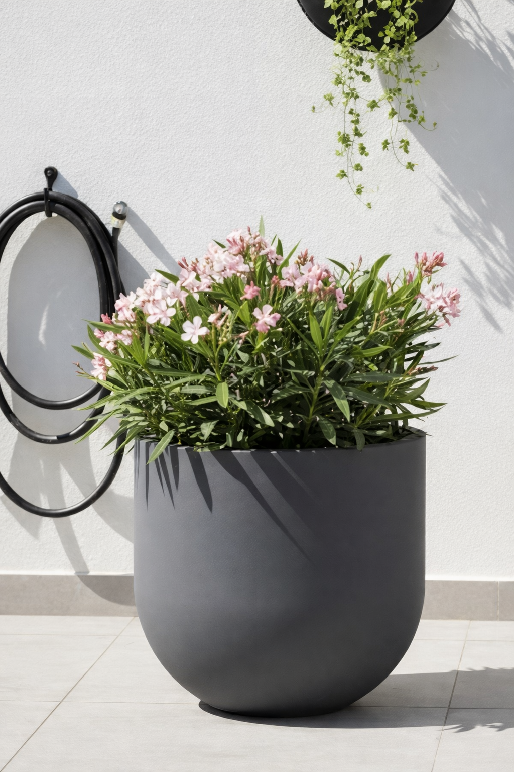 Nowoczesna Donica Primo charakteryzuje się dużą pojemnością, dzięki czemu możesz posadzić w niej rośliny lub drzewka z większą bryłą korzeniową. Okrągła Donica Primo to świetny wybór zarówno do wnętrz, jak i na taras lub balkon. Polecamy zastosowanie osobno lub w zestawie przed drzwiami wejściowymi.