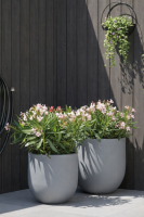 Nowoczesna Donica Primo charakteryzuje się dużą pojemnością, dzięki czemu możesz posadzić w niej rośliny lub drzewka z większą bryłą korzeniową. Okrągła Donica Primo to świetny wybór zarówno do wnętrz, jak i na taras lub balkon. Polecamy zastosowanie osobno lub w zestawie przed drzwiami wejściowymi.